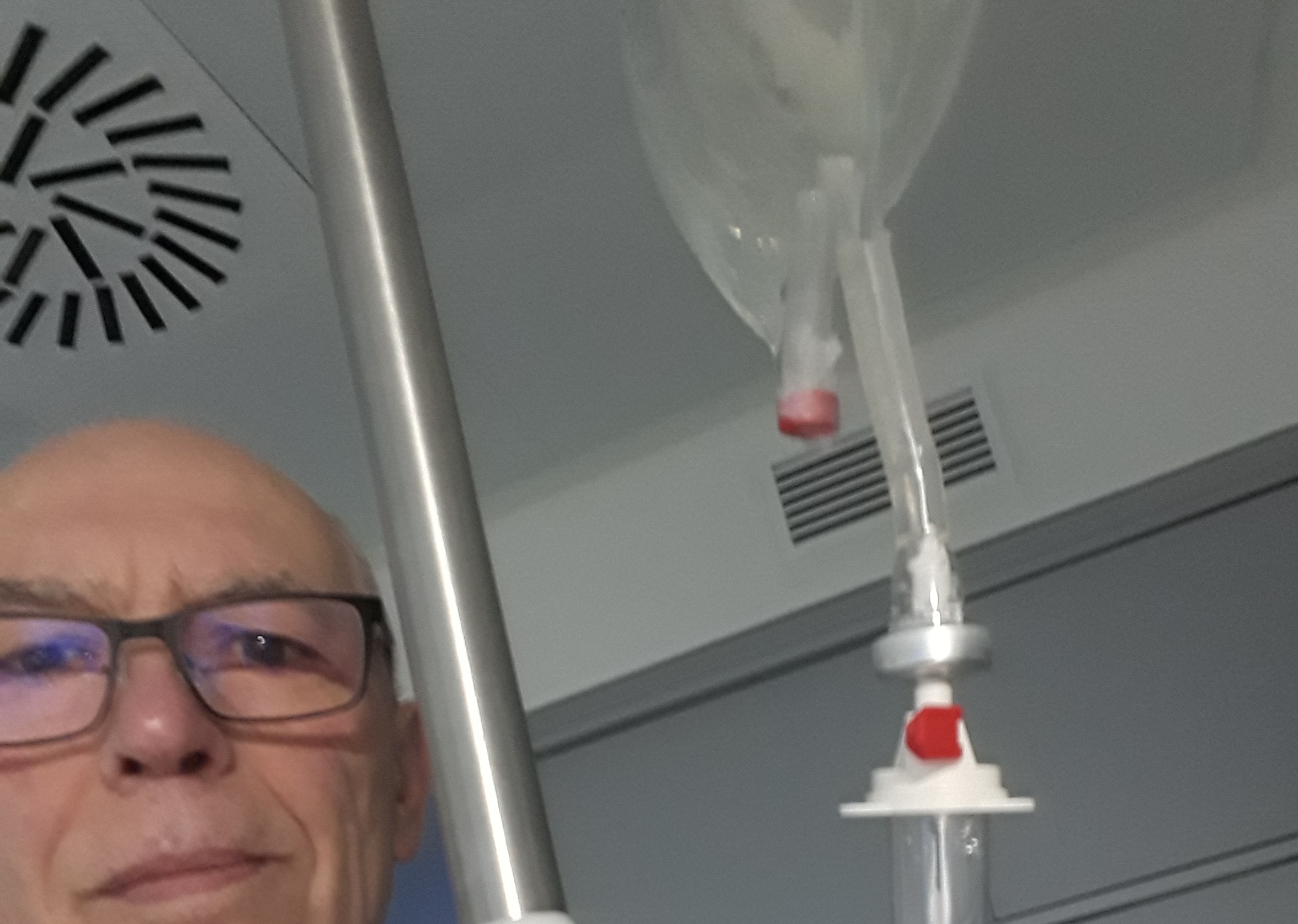 la percezione di dover soffrire col trapianto del midollo, con il rischio di non guarire, o anche di morire e nel contempo l’esser preso dall’ottimismo e con la convinzione di guarire. Nei primi giorni inizia la preparazione al trapianto con la chemioterapia, subito gli effetti collaterali non si avvertono, ma si sa che arriveranno e bisogna prepararsi con serenità, non è facile. Come si fa ad essere sereni quando sai che ti dovrai concentrare su ciò che sta per succederti e quindi tutte le priorità e i pensieri, persino gli affetti della vita quotidiana, vanno in secondo piano. Passa qualche giorno e cominci a restare inchiodato nel letto con doppio cuscino, così puoi guardarti intorno e vedere le quattro mura della stanza che delimitano il tuo orizzonte. Nel corpo sono inseriti due cateteri venosi per le continue infusioni di farmaci. A portata di mano rimane il pulsante rosso necessario per avvertire l’infermiera che una flebo è terminata e in quel momento ti illudi piacevolmente, come se tutto stia per finire, invece il flacone vuoto viene sostituito da un altro e poi un altro ancora e la pazienza diventa una virtù, il dolore fisico, ma non imponente, lo sopporti meglio quasi come un’abitudine rassegnato. Dopo l’infusione del liquido con cui viene impiantato il nuovo midollo i valori del sangue crollati con la chemioterapia, dovranno iniziare a risalire.