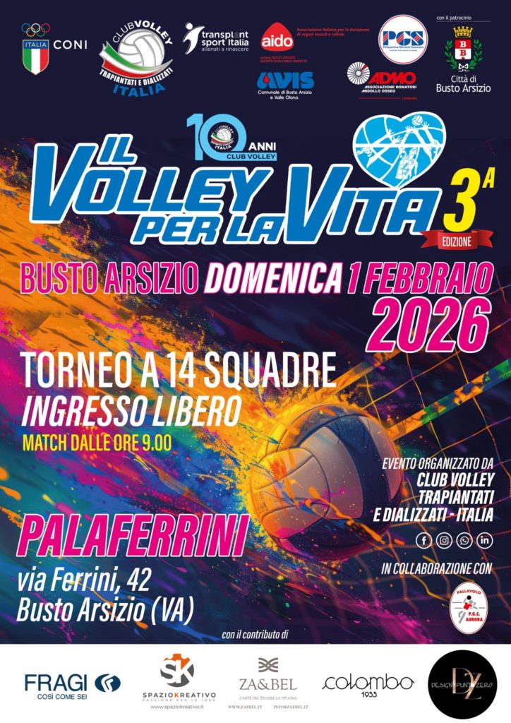 la terza edizione dell’evento sportivo e di solidarietà organizzato dal Club Volley Trapiantati e Dializzati Italia e P.G.S. Aurora, con il patrocinio di ADMO Lombardia, AIDO Busto Arsizio e AVIS Comunale Busto Arsizio e Valle Olona, associazioni riunite nel promuovere la cultura del dono sul territorio