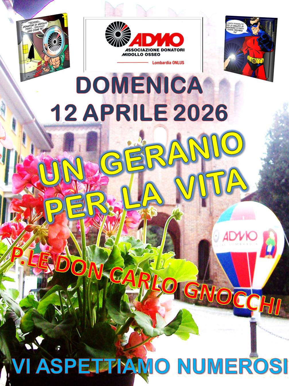 Domenica 12 aprile dalle 9:00 alle 19:00 in piazza Don Carlo Gnocchi i volontari ADMOdistribuiranno coloratissimi gerani a sostegno dell’opera di sensibilizzazione.