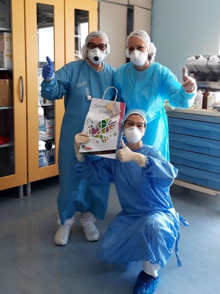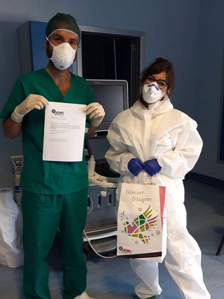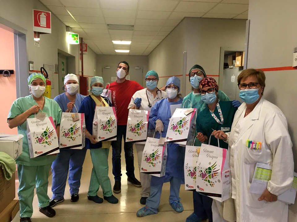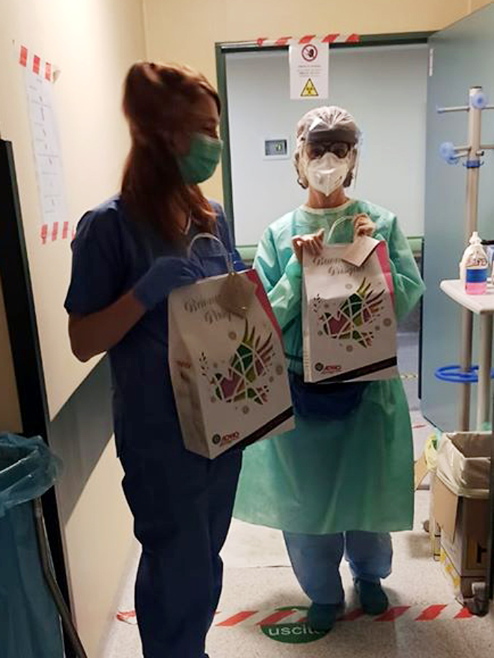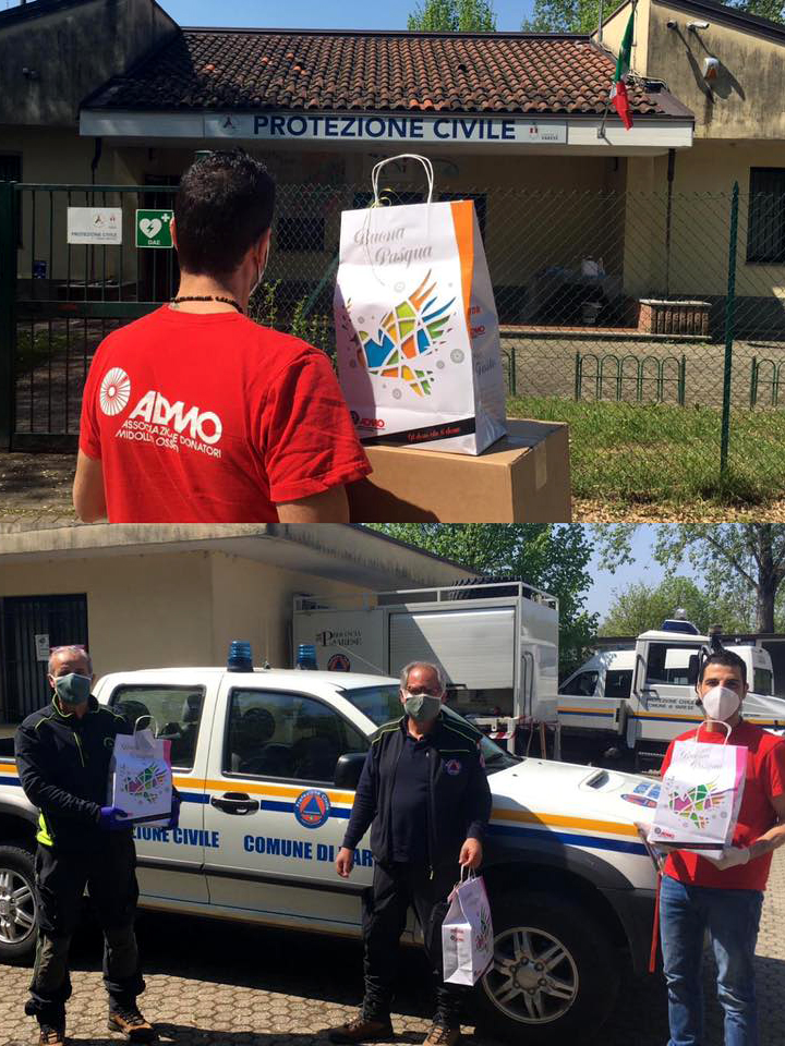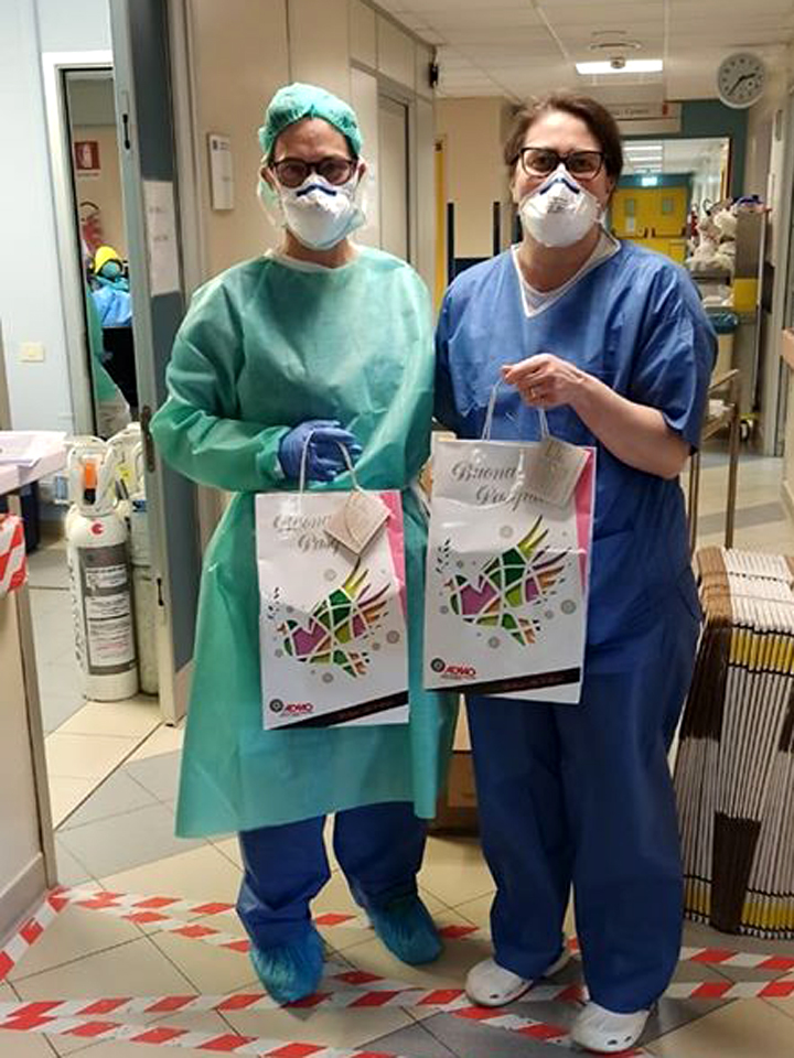 Bergamo: Ospedale di Bergamo, Ospedale di Treviglio, Ospedale di Alzano Lombardo, Reparto Covid-19 Ospedale di Gazzaniga, Case di riposo di Cene, Casnigo, Gandino e Casa Albergo di Albino, Casa di riposo San Giuseppe di Gazzaniga, Avis media Valle Brembana, Avis Media Valle Seriana, Avis Alta Valle Seriana, Donatori di Sangue Brembilla, Donatori di Sangue Val di Scalve
