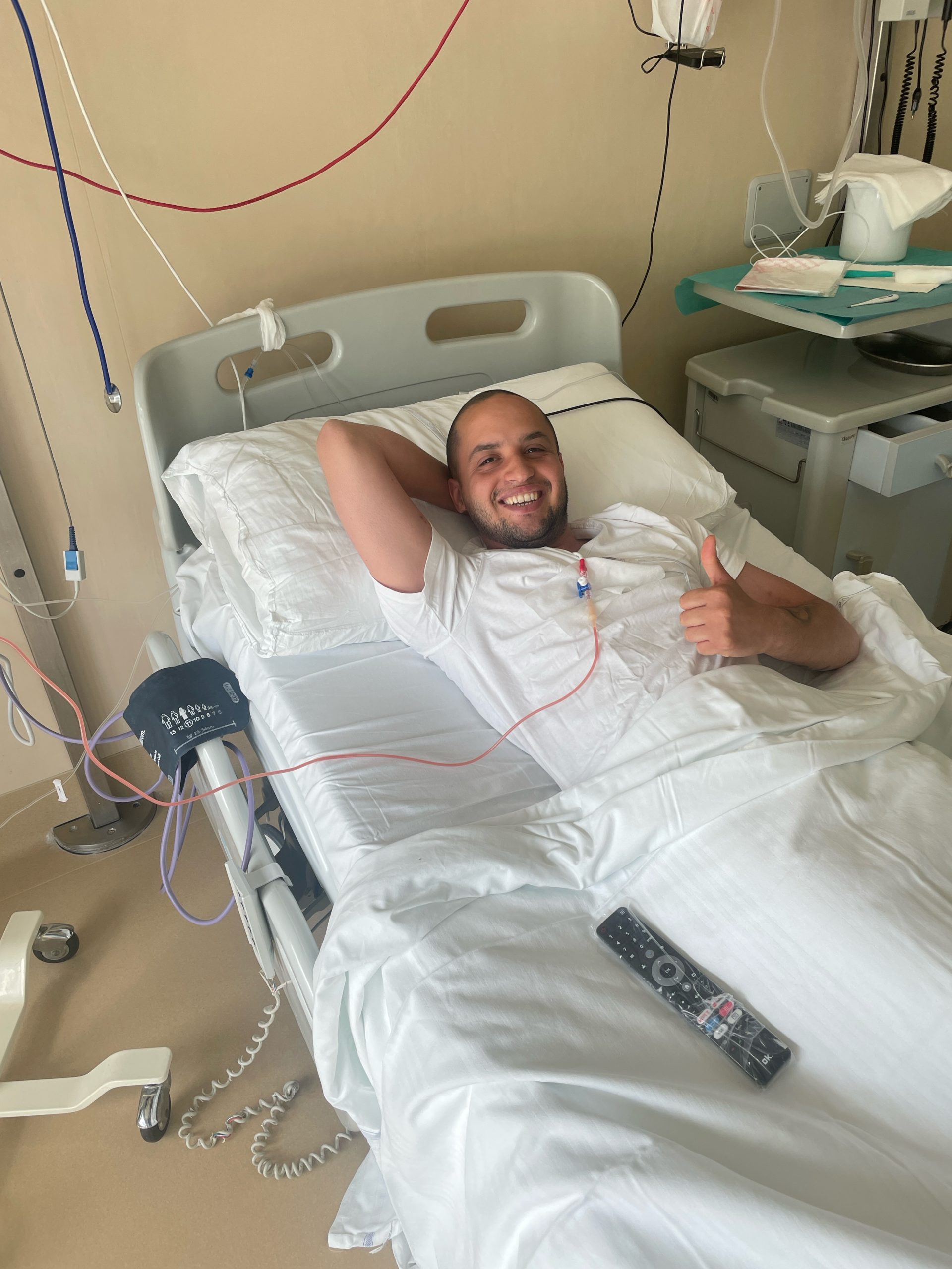 Tutto cominciò ad Aprile 2023 quando sentii dei forti mal di testa tanto da arrivare a prendere tre tachipirine al giorno e punture di voltaren per alleviare un dolore al ginocchio che non mi permetteva di stare in nessuna posizione. Gli esami del sangue erano pieni di asterischi ma nessuno diceva niente! Ho anche preso pastiglie per l’artrite perché si pensava fosse quella la causa dei miei dolori ma nulla funzionava. Così, dopo una vacanza ad agosto dove vivevo bene solo mezza giornata, abbiamo deciso io e mia mamma di chiedere di farmi ricoverare per venirne a capo. Era il 25 Agosto 2023 ed ho iniziato i miei lunghi ricoveri nel reparto di medicina dell’ospedale ASST Sette Laghi di Varese. Dopo tre giorni i dolori al ginocchio erano passati con delle pastiglie e li ho pensato che fosse finito tutto e potevo tornare a casa, ma invece sono stato trasportato nel reparto di Ematologia e tramite una biopsia è arrivata la stangata: Leucemia linfoblastica acuta.